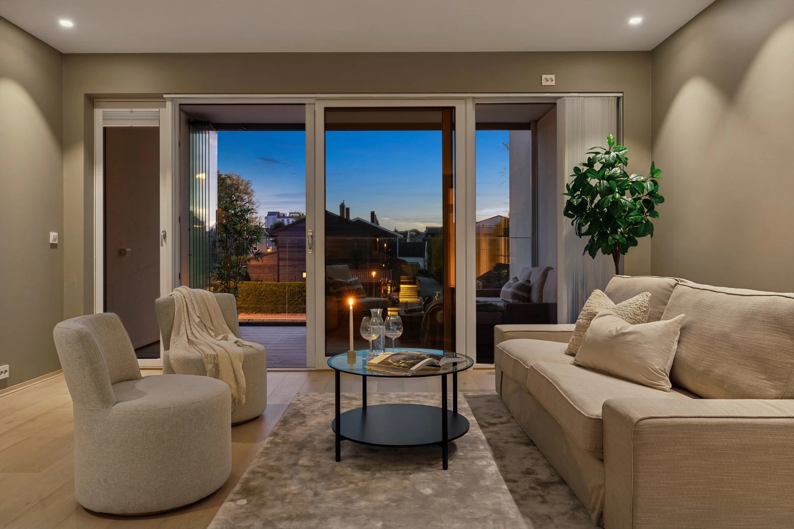 Leiligheten har en svært god beliggenhet, omgitt av grønne arealer og med den idylliske Prestebekken som nærmeste nabo. Den gjennomgående planløsningen, høye standarden og store vindusflater gir en lys og luftig atmosfære med rikelig naturlig dagslys. Her får du en stor 3-roms leilighet med alt du måtte trenge i hverdagen. Leiligheten byr bl.a. på kvalitetsløsninger, to balkonger og et samlet bruksareal på 114 m2. På felles tomt er det en fantastisk fellesstue, orangeri og hobbyrom til beboeren.