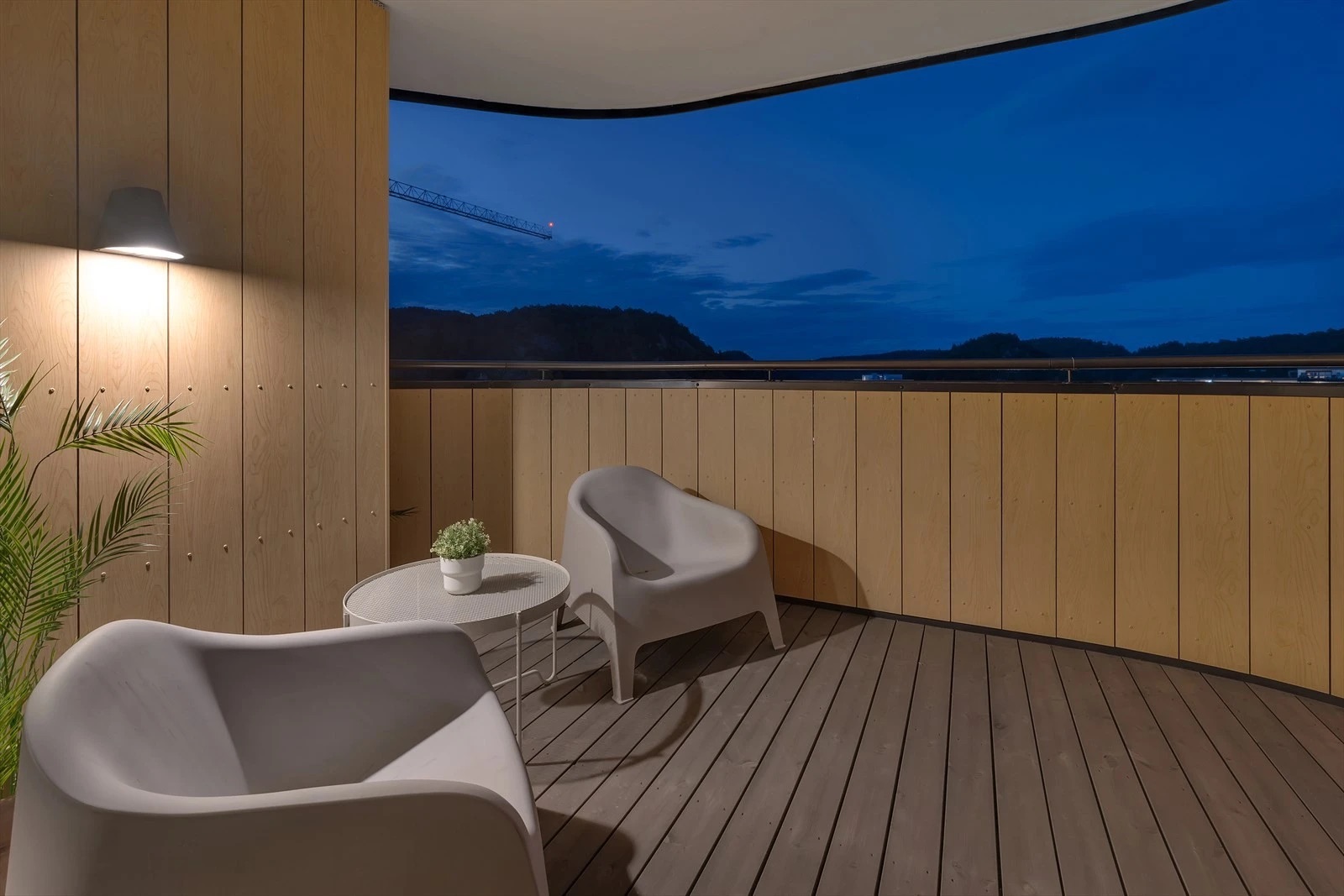 Velkommen til Sentrumsveien 27! Her kan du sikre deg en lekker leilighet i 7. etasje med stor hjørnebalkong!